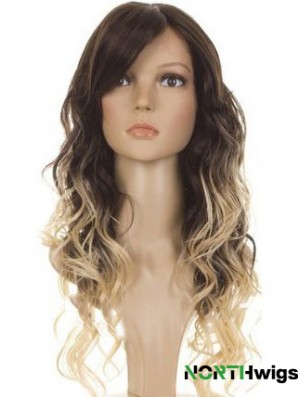 Wavy Synthetic Wigs Blonde Color Capless With Bangs