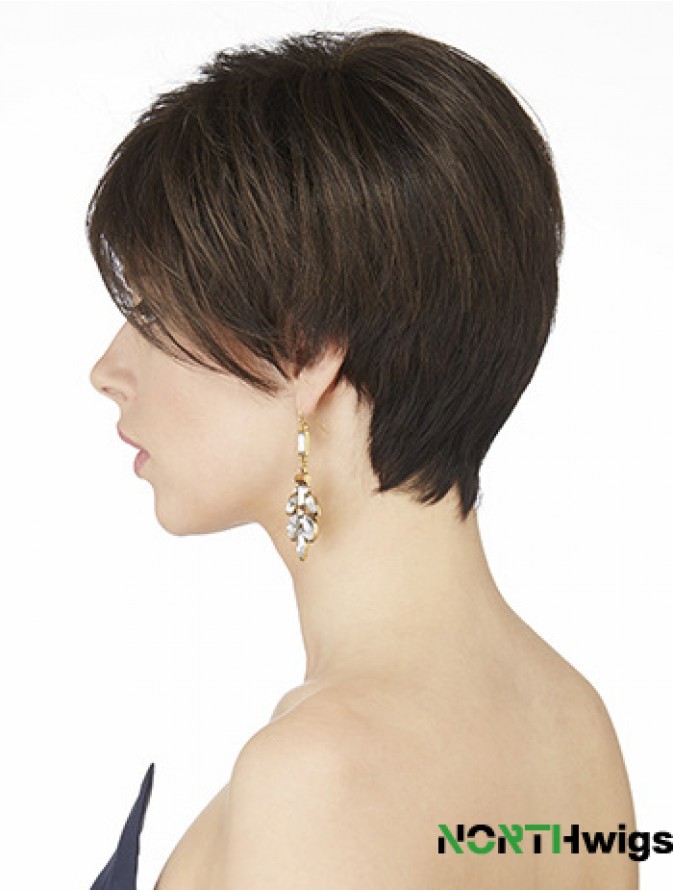 Good 6 inch Straight Brown Boycuts Short Wigs