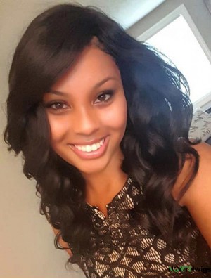 Curly Black 18 inch Without Bangs Remy Human Hair 360 Lace Wigs