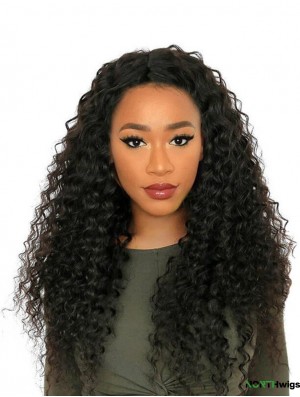24 inch Without Bangs Black Curly Remy Human Hair 360 Lace Wigs