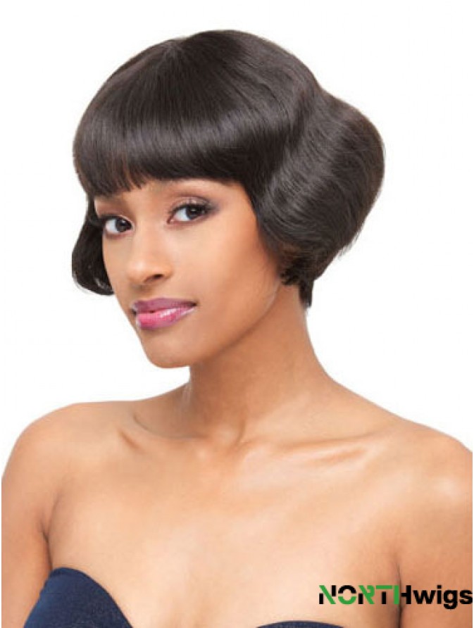 With Bangs Cheap Wavy Black Short Human Hair Lace Front Wigs